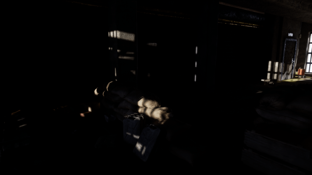 If the player chose to explore the space before moving on they would find an area set up by the police to use as a makeshift living and sleeping area. The lighting here helps to convey how the mood of the space and the living conditions of the police who used it. The area is darkly lit and because of this it feels damp and uncomfortable. The police based in this area wouldn’t have had amazing living conditions and this suggest a possible reason for why they were so quick to abandoned the space without putting up much of a fight.