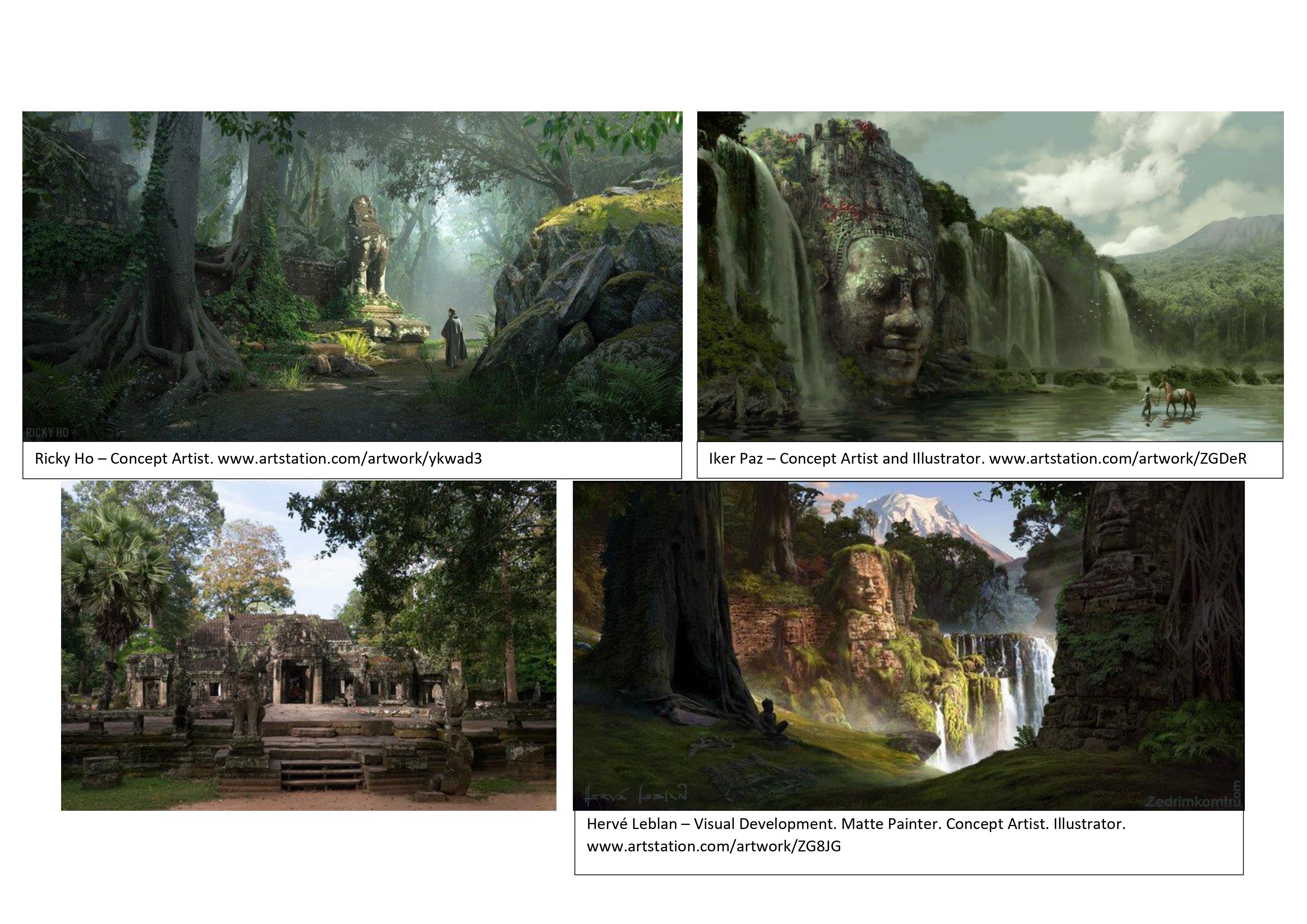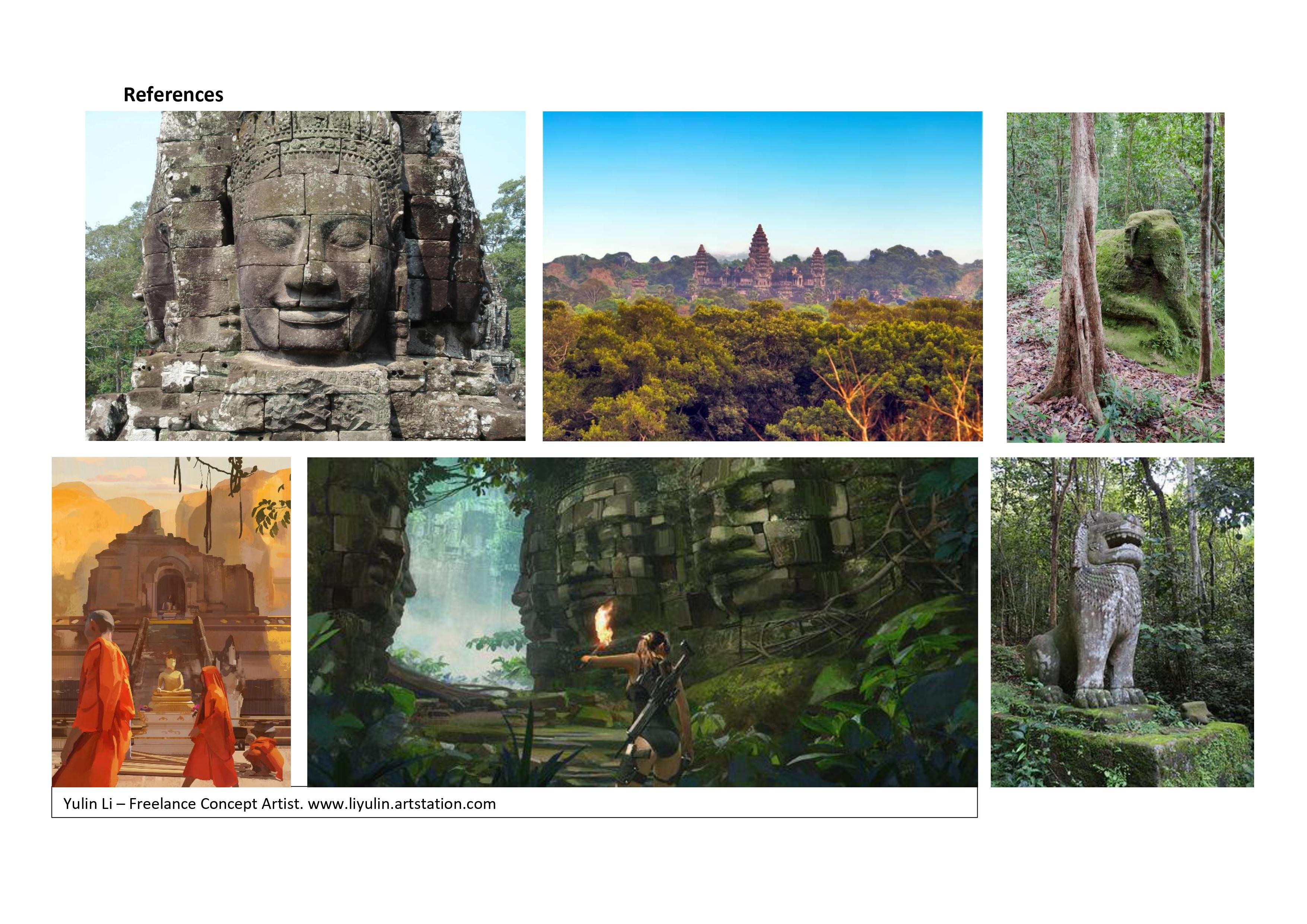 Along with creating the level design document I also created a series of mood boards to go along with the Level Design Document to expand on the reference images that I had previously found. The reference images I gathered will all influence the visual style of the architecture found within the environment and serve as guidance for the foliage placement and the way that nature has reclaimed the space.