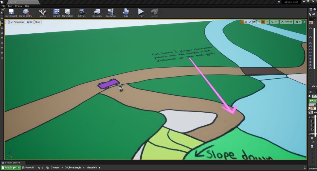 Figure 5: Screengrab from my Jungle level showing map and character added to the level