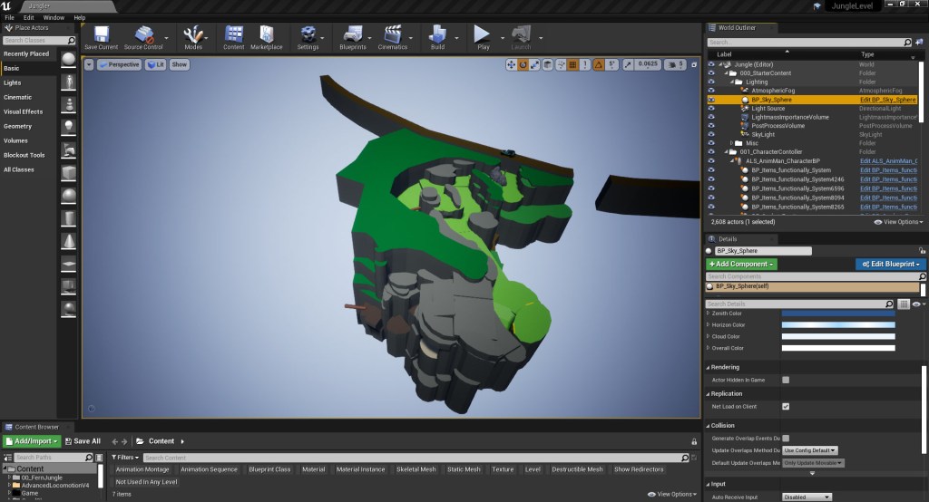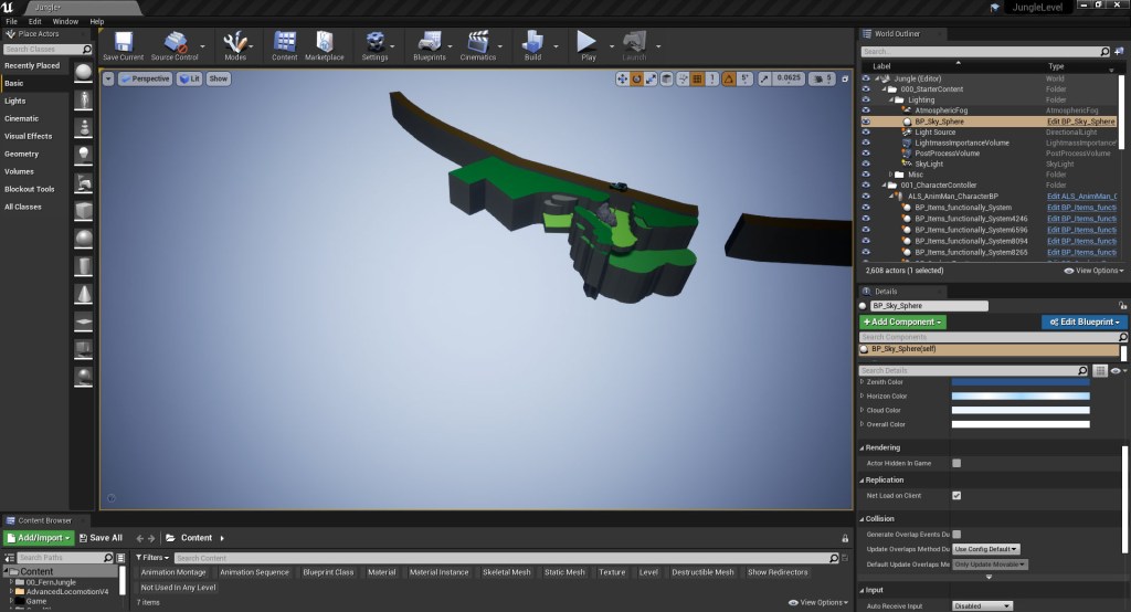 Figure 1: Screengrab from Jungle level blockout showing the starting section