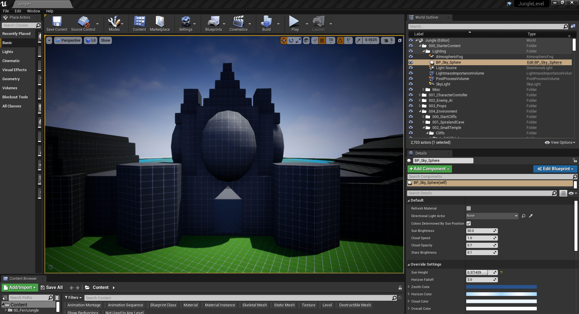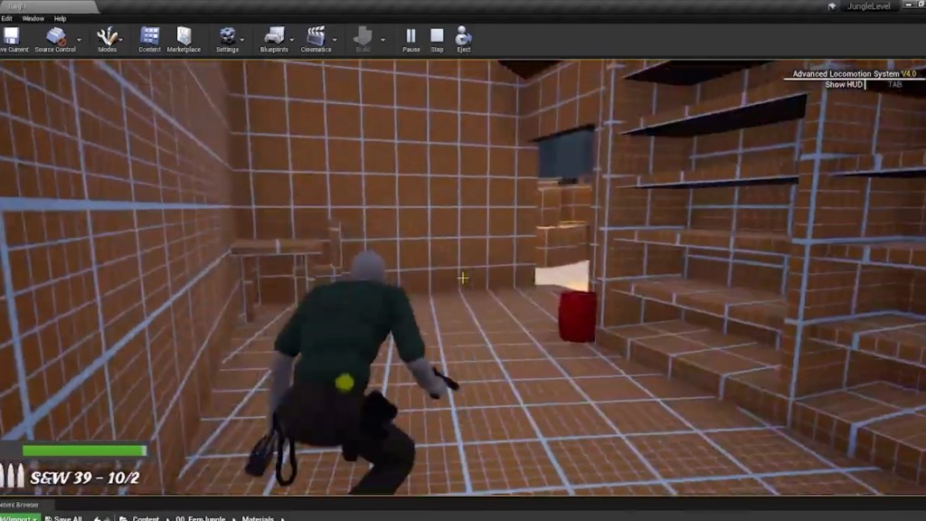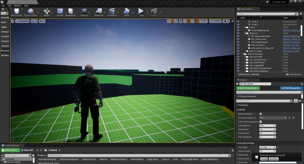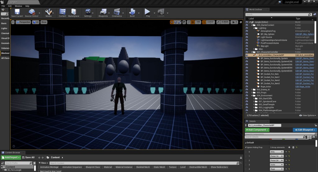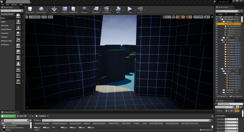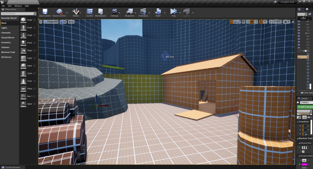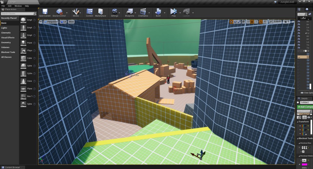 The final thing I did this week was to make some changes to the lighting, making the level lighter and removed the Fresnel effect from the camera that was included as part of the project from Jakob W.