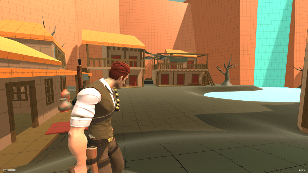 Week 5: Create the loose framework of an old West mountain ghost town. Leave some room for surrounding gameplay spaces. Focusing on a single spatial cluster within the town, and model it out. Create as much detail as you think you need in order to express your ideas.